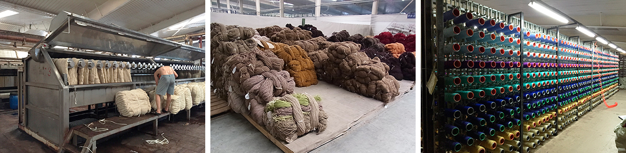 弊社の協力工場ではオーストラリア産(またはニュージーランド産)の羊毛を仕入れ、色糸の染色からを自社で行っております。カーペットの製造工場で色糸を自社で染めている会社はほとんどありません。自社で製造することにより、サプライヤーに依存することなく、安定した色糸を供給することができます。また色ムラを最小限に抑えることができ、短納期での対応も可能となります。